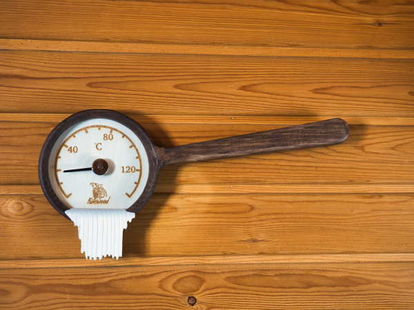 Löylykauhaksi muotoiltu löylymittari jossa vaaleaksi sävytetty mittaripohja jossa tummat numerot antavat selkeän kontrastin hämyisempäänkin saunaan. Kauhamittarista kahta eri designia; Kauha tai Valuva kauha. Valuva kauha muuten sama kuin kauha, mutta lisätty yksilöllinen puun syiden muotojen mukaan muotoiltu veden kauhasta valumista esittävä käsityönä muotoiltu puinen vesiputous.